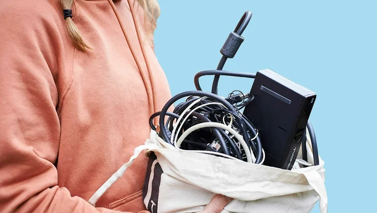 To recycle, find a bag that you can use to store old cables and leads until you can go to the recycling centre – or until collection day, if you have one.