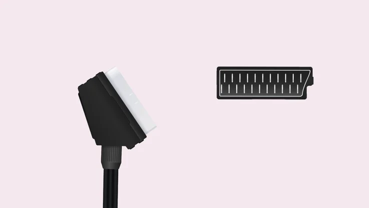 Connects older TVs to videos and DVD players (to play the picture and sound); comes as a 2-part cable. Mostly replaced by HDMI.